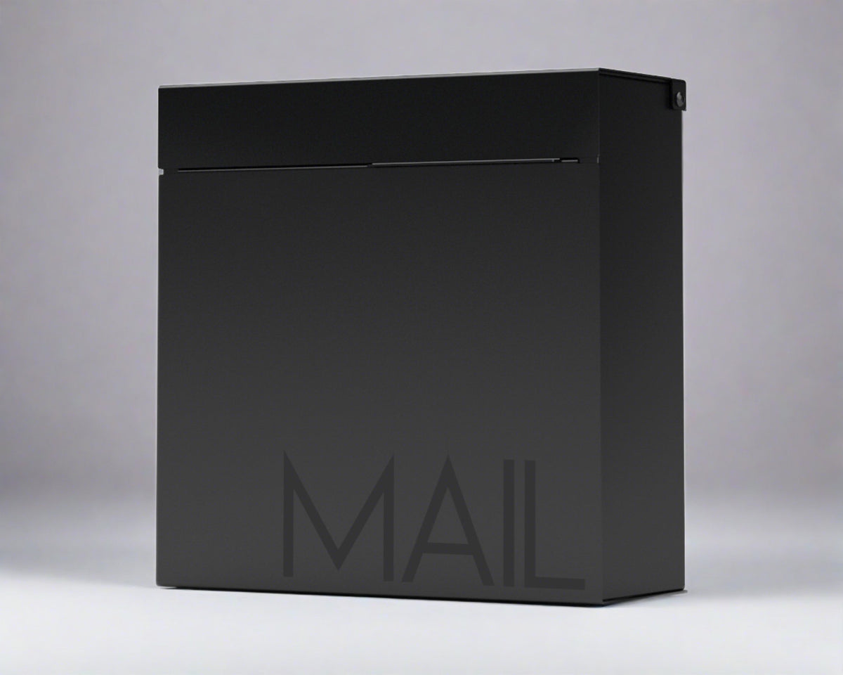 The Martin wall-mounted mailbox is square and extremely versatile for a unique look. Offered in black, many lettering colors (for numbers and texts) are available in vinyl.